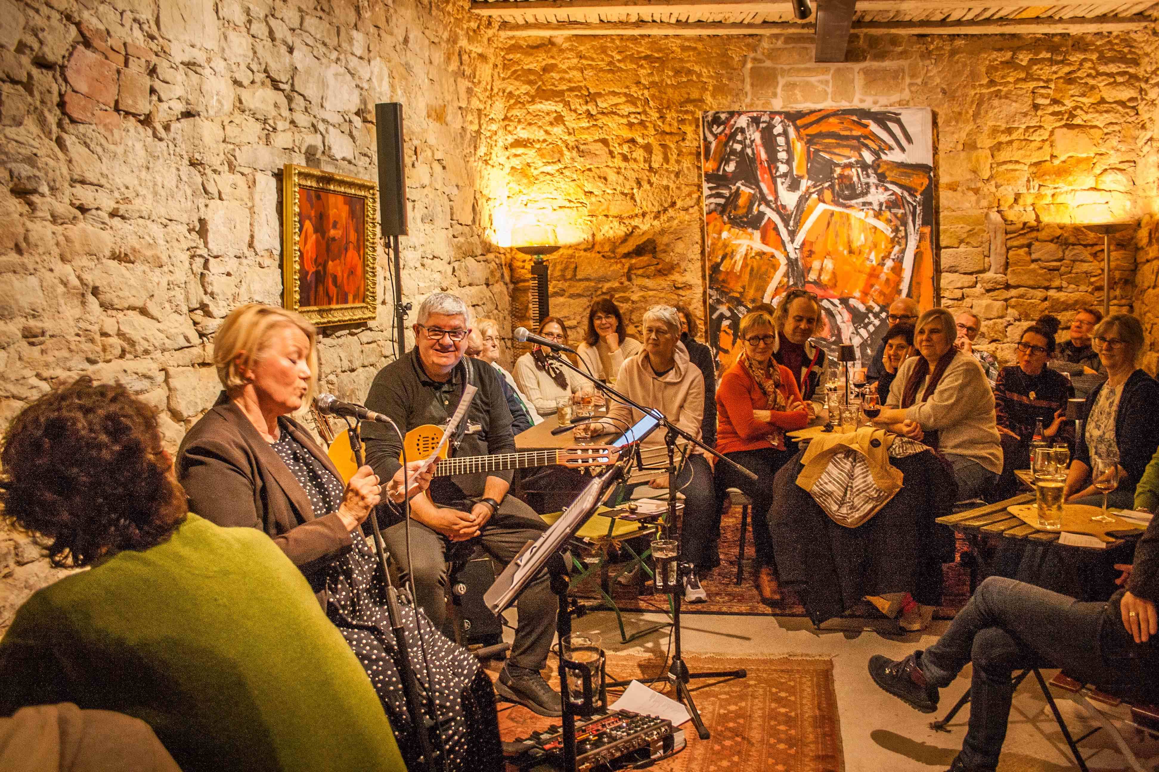 Nun schon zum zweiten Mal haben Ann-Kathrin mit ihrer beeindruckenden Stimme und Simon mit einfühlsamer Begleitung auf seiner E-Gitarre das Publikum in ihren Bann gezogen. Mit einem bunten Mix aus Evergreens von den Beatles, Amy Winehouse, U2 gemischt mit fast vergessenen, neu interpretierten Hits von Herbert Grönemeyer und Heinz Rudolf Kunze hat das Akustik-Duo von der nördlichen Weinstraße uns allen einen unglaublich schönen Abend beschert.